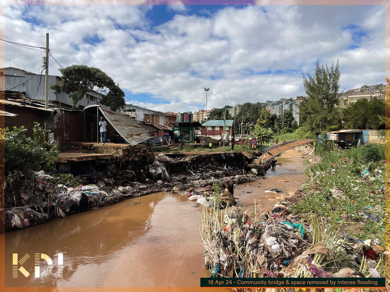 In April 2024 the decade-old public space at KPSP07, a vital hub for safety, services, and community life developed by Kibera United For Our Needs (KUFON) as part of the Kibera Public Space Project network since 2014, was badly damaged. Yet this crisis became an opportunity to build back better.The Kenya Urban Roads Authority (KURA), KDI, KUFON, and the wider community, partnered to pool efforts and resources together to deliver a comprehensive solution. KURA constructed a new, flood-safe bridge, while KDI focused on strengthening flood defenses with gabion mattresses - a seriously robust solution! With the community, we reinstated the public space, which, excitingly, has already turned green and vibrant in record time.