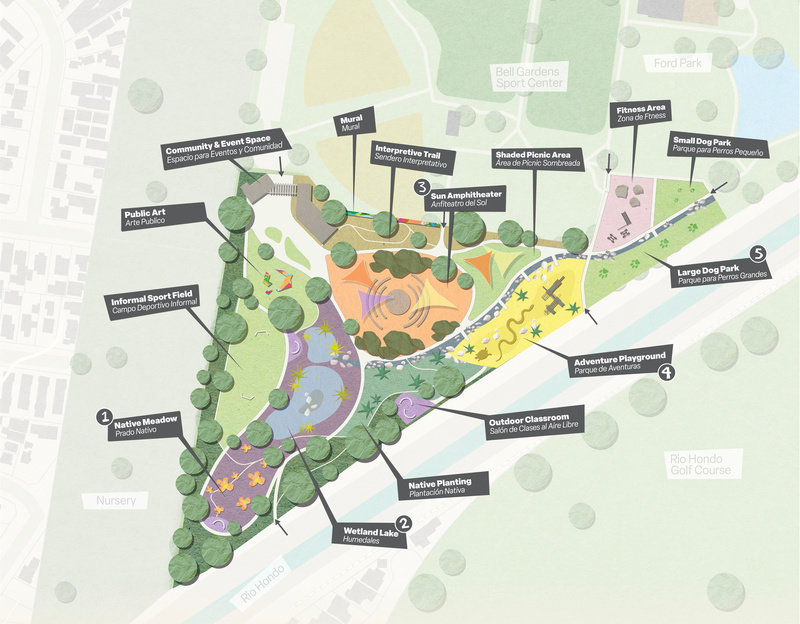 This new public space's design laid out in the Vision Plan would connect the community to the native flora and fauna of their own backyard and the adjacent Rio Hondo, while also encouraging more gathering and civic engagement. In the spring of 2024, the Bell Gardens City Council voted in favor of moving forward with the new design and the APA Los Angeles Chapter awarded the Vision Plan with the Award of Merit for Opportunity and Empowerment.